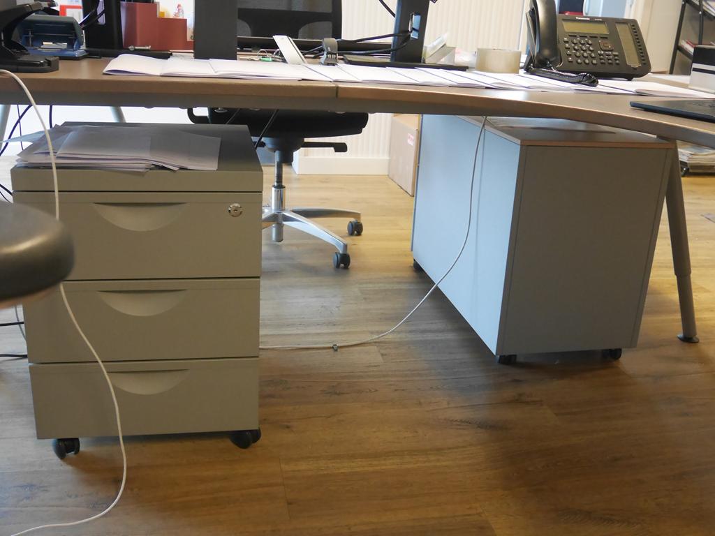 Lot 44: 2 bureaux design en bois avec 2 chaises de bureau sans matériels informatiques