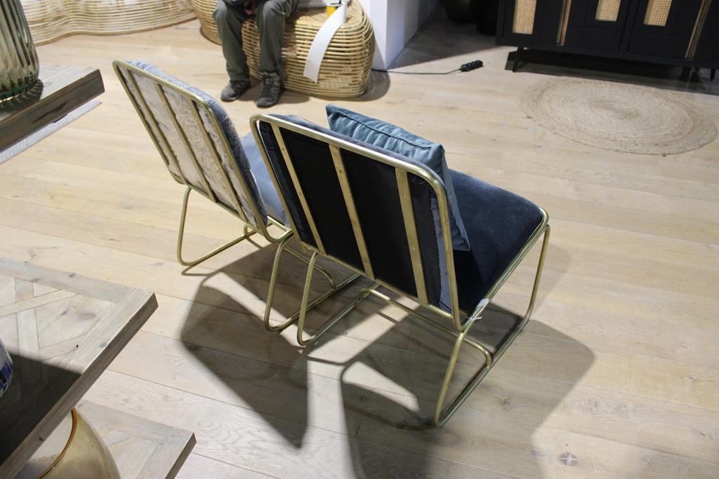 Lot 34: 2 chaises laiton + velours