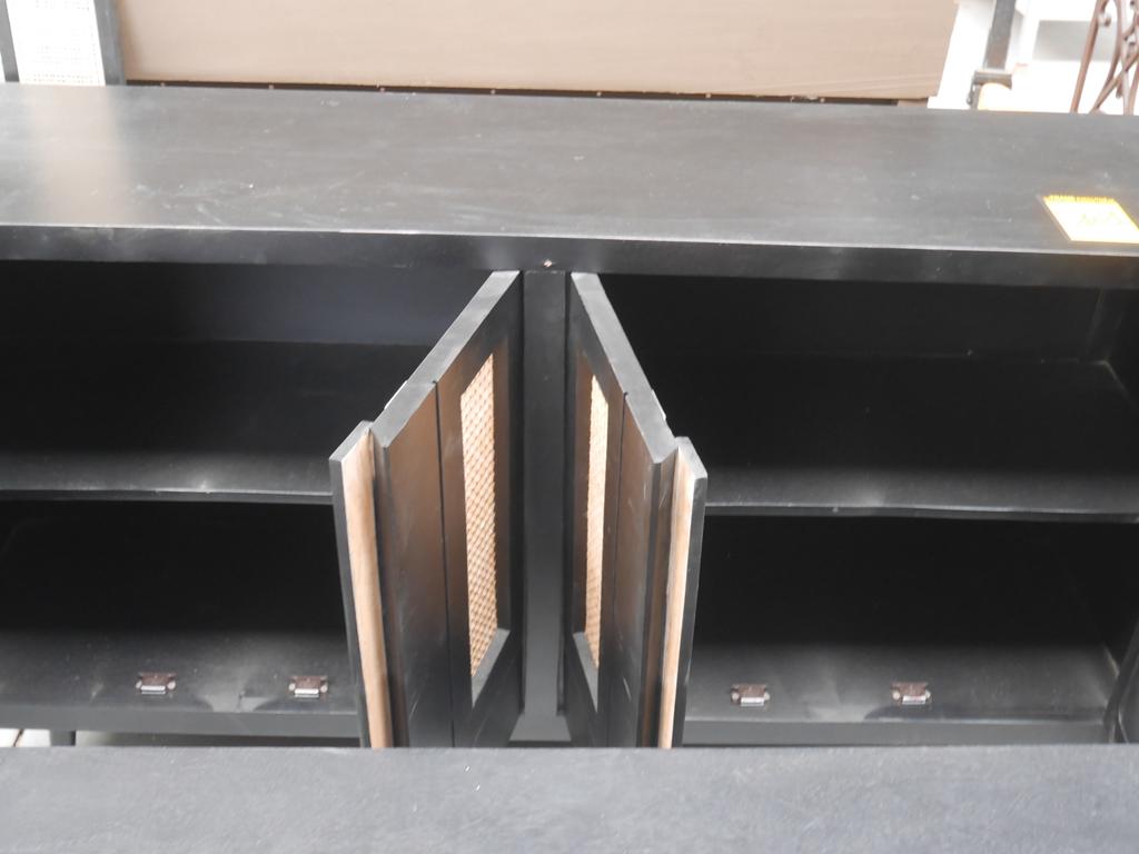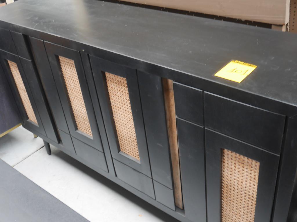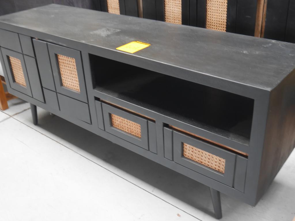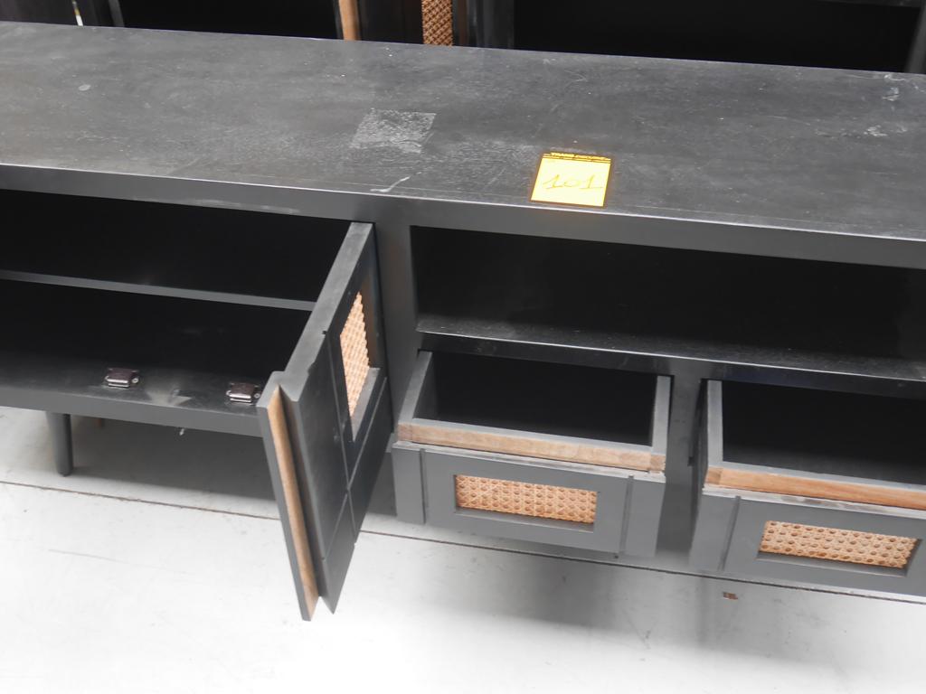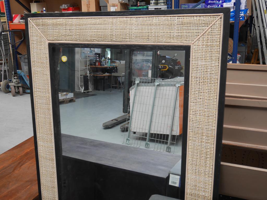 Lot 101: 2 meubles manguier noir/ osier+ grand miroir