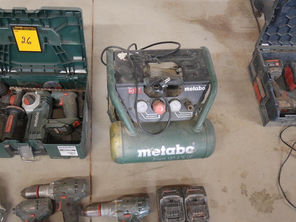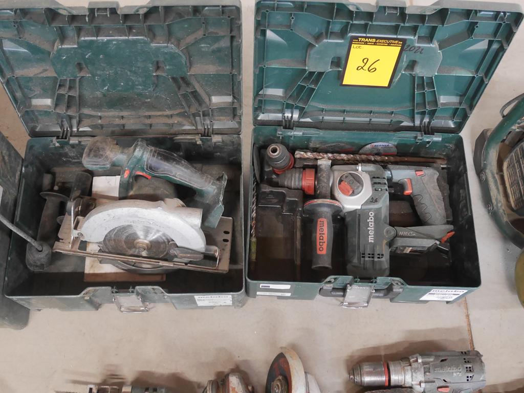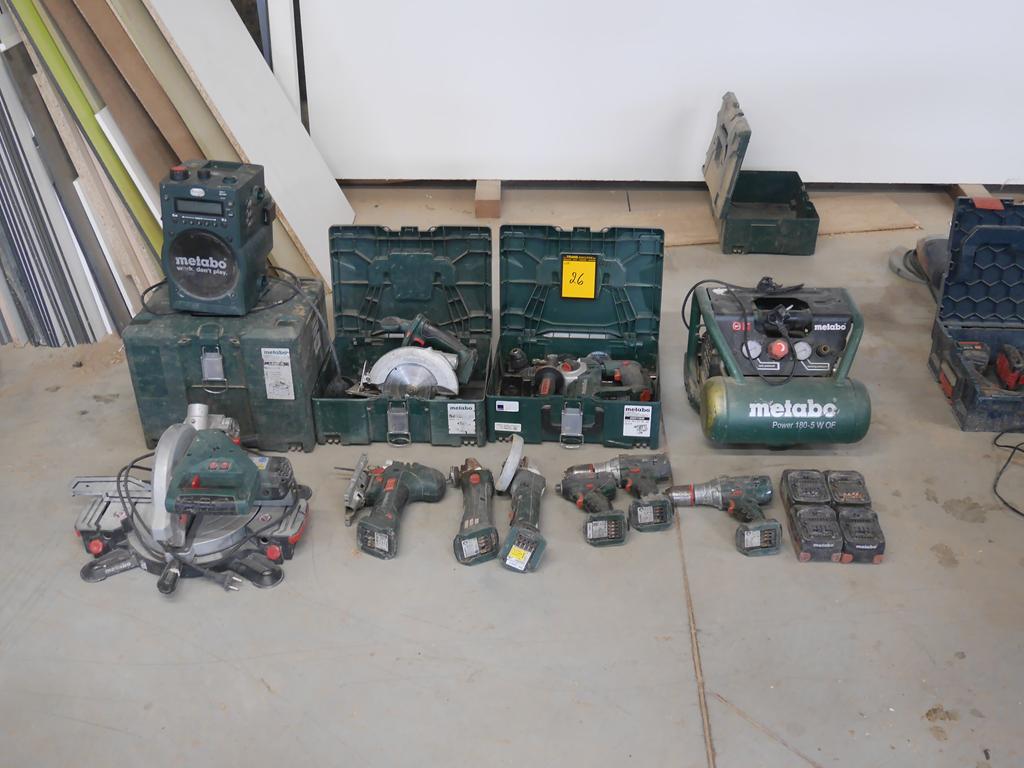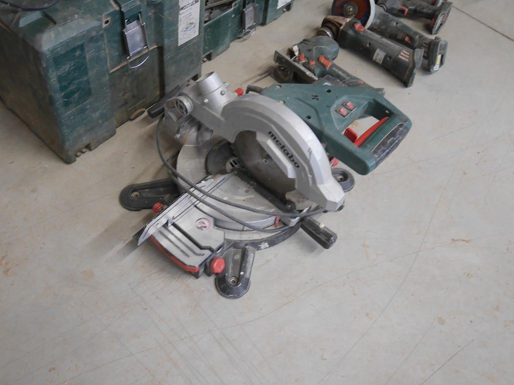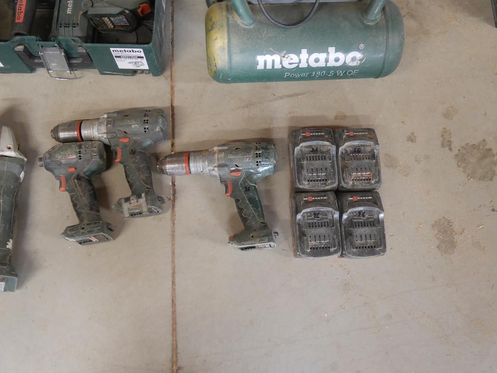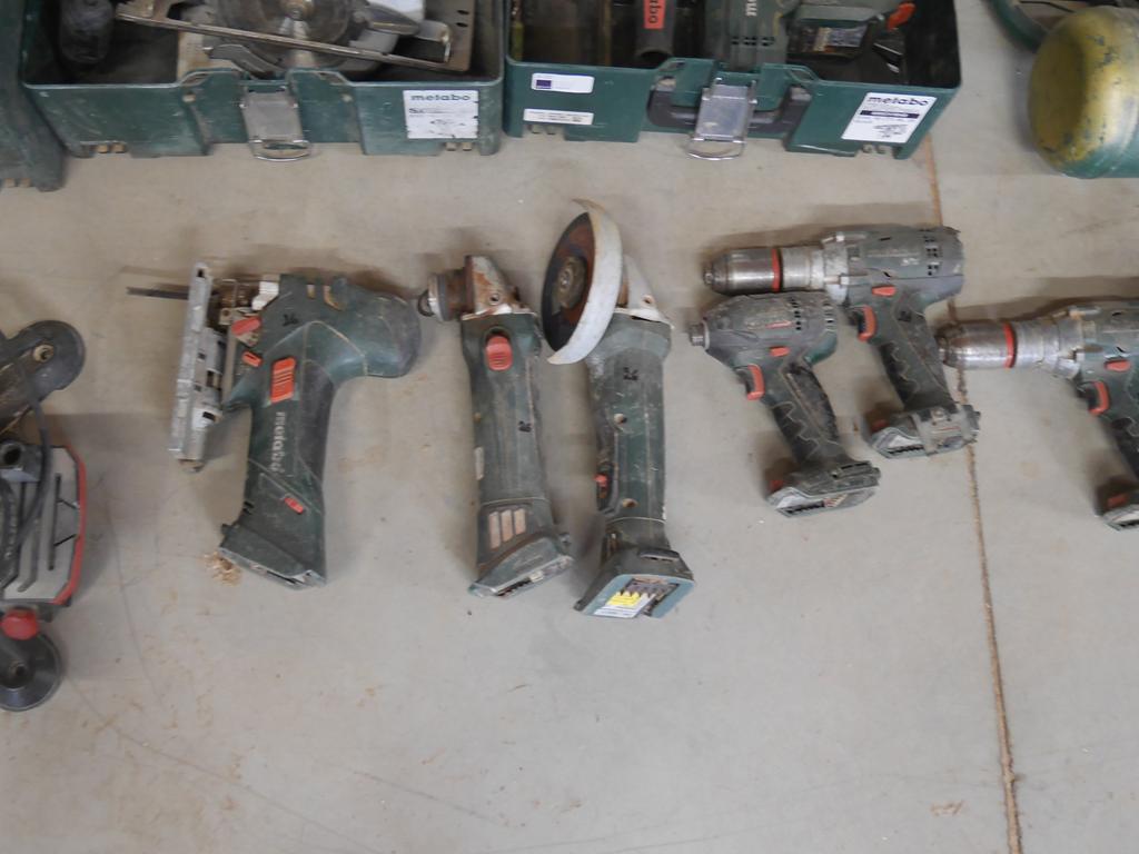 Lot 26: 3 machines filaires +8 machines sur accus avec 4 batteries Metabo
