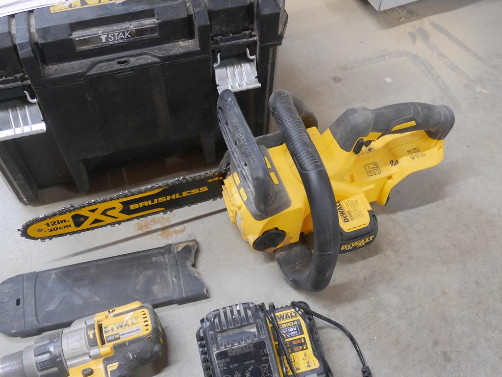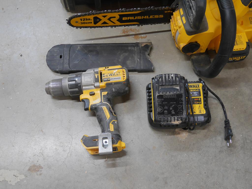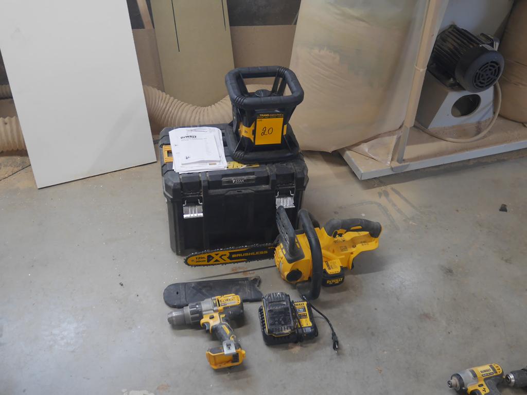 Lot 20: 3 machines sur accus avec 1 batterie et un chargeur : laser, visseuse, tronçonneuse
