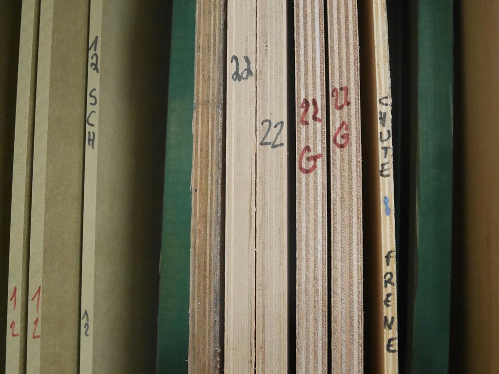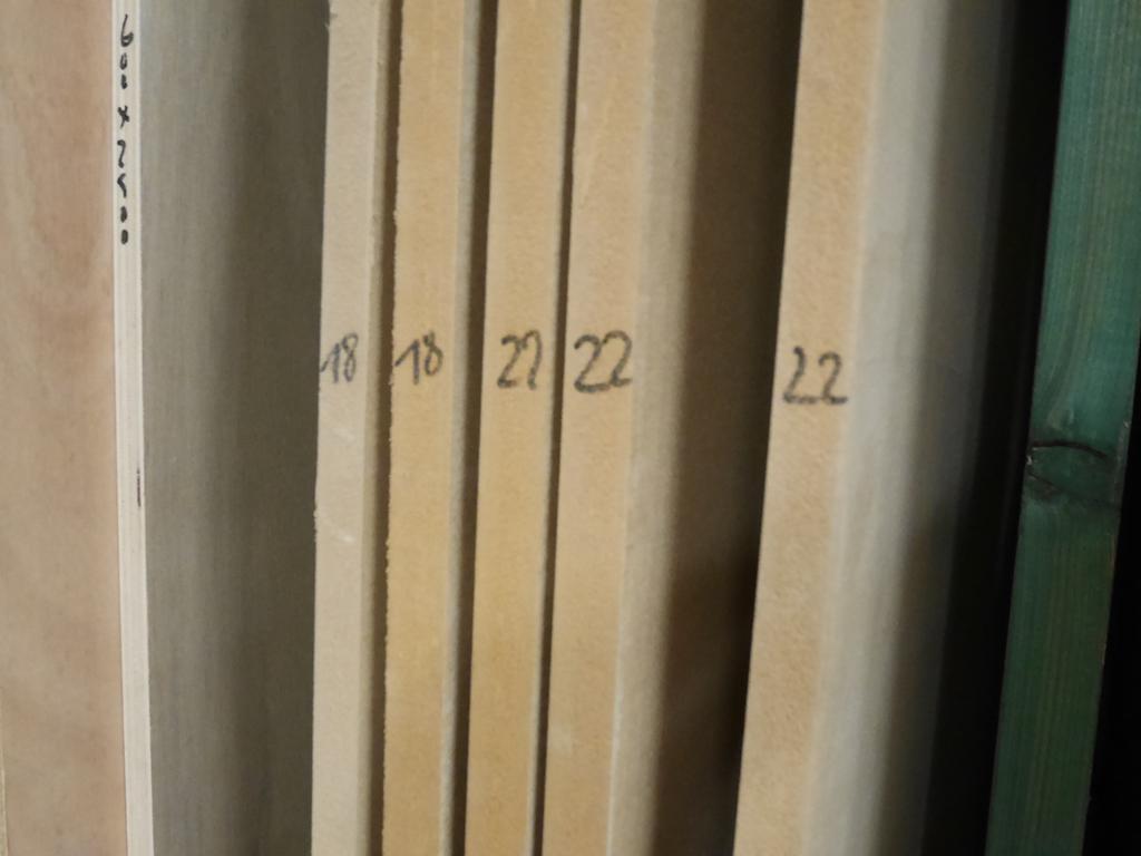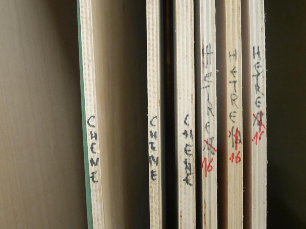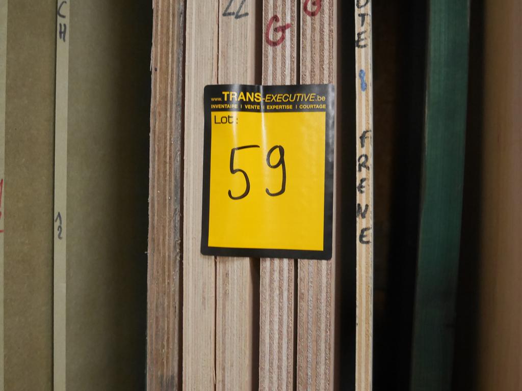 Lot 59: 60 panneaux en bois diverses essences: chêne, hêtre, frêne, afzélia, MDF
