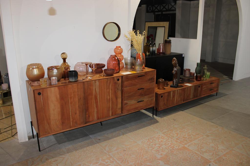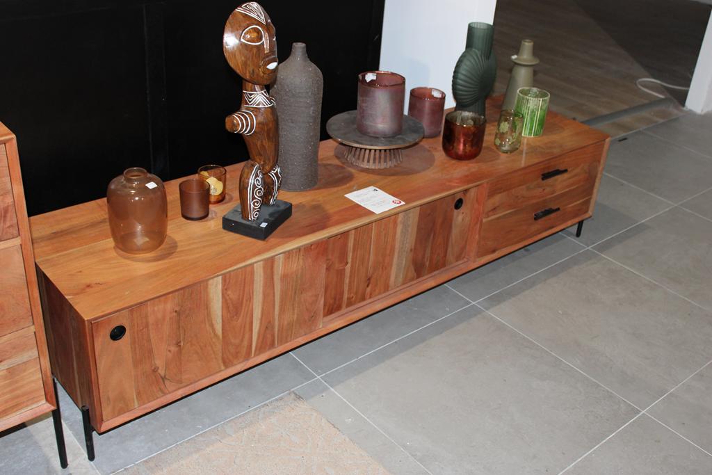 Lot 42: Buffet acacia massif 180*45*80+ meuble TV en acacia massif 180*45*40+ décos