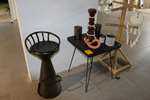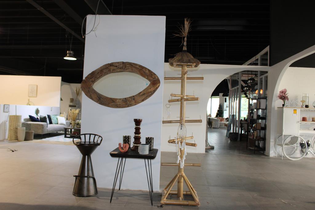 Lot 12: décorations diverses: miroir, table, tabouret+ objets décos