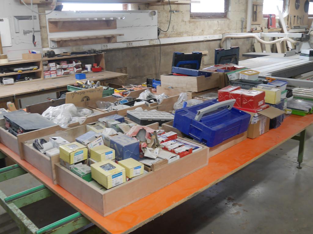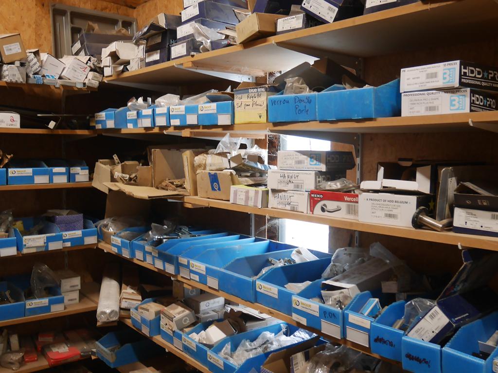 Lot 33: Important lot: visseries, quincailleries, accessoires portes, outillages à main