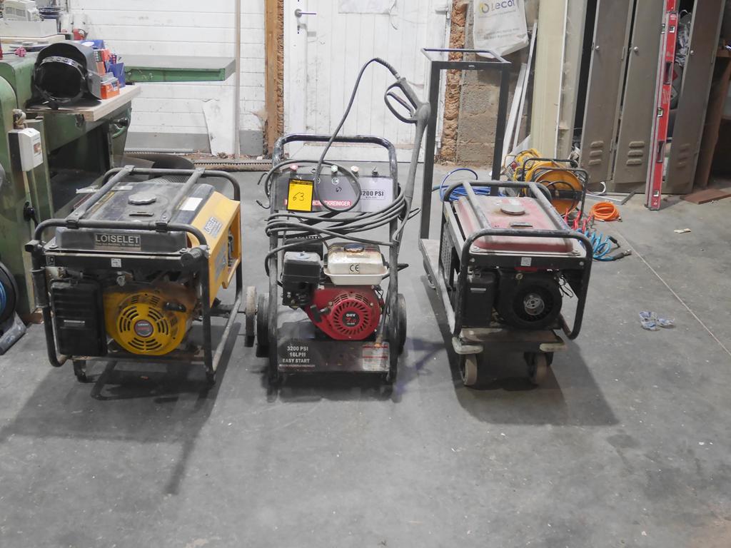 Lot 63: Machines thermiques à vérifier : nettoyeur hte pression et 2 groupes électrogènes
