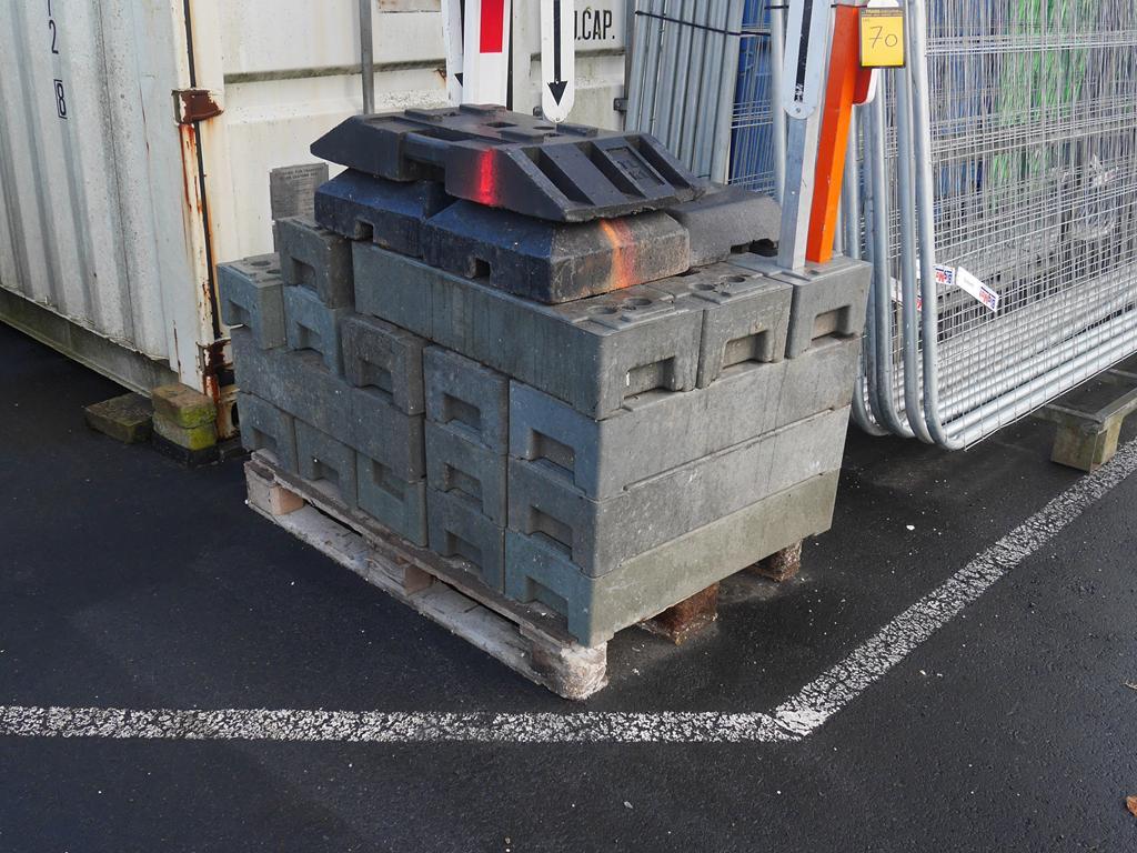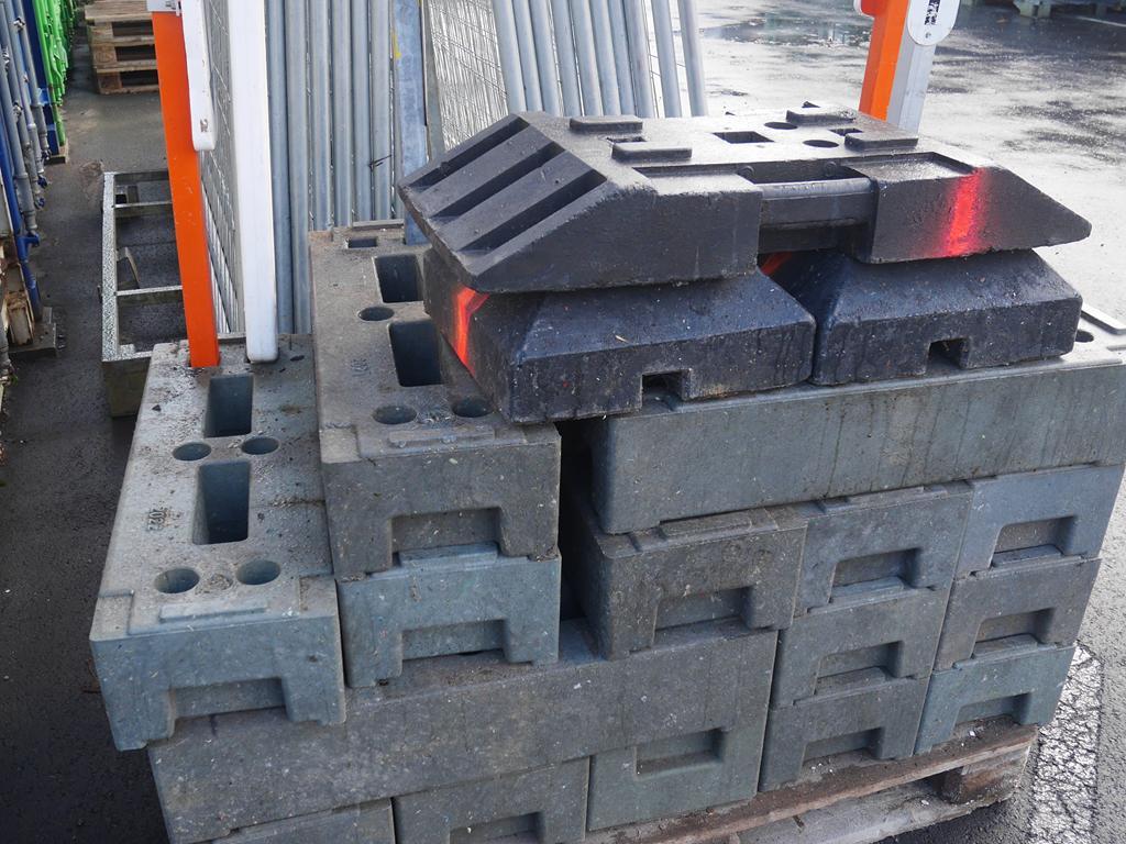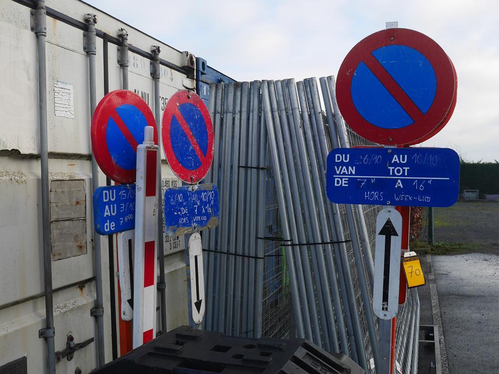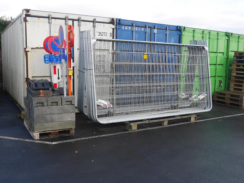 Lot 70: Matériels de sécurisation de chantier : 19 barrières Heras + 23 plots plastiques avec panneaux de signalisation