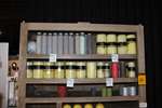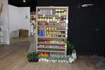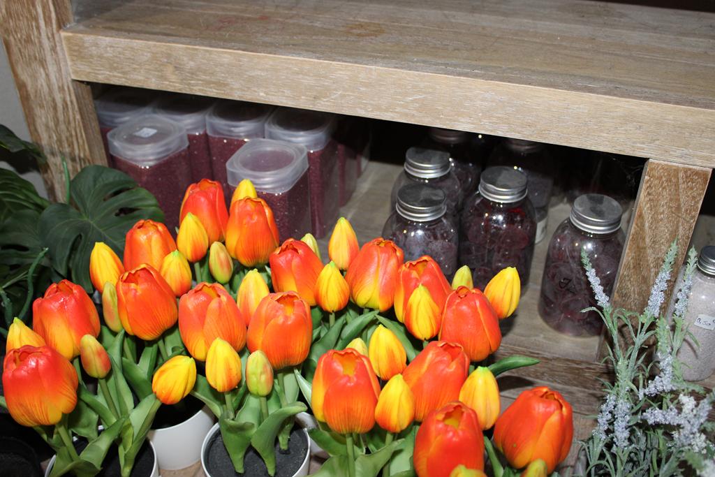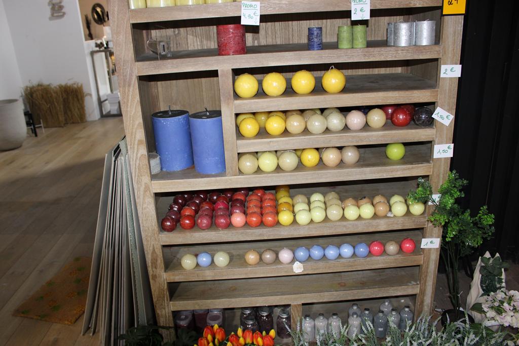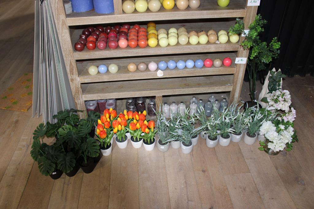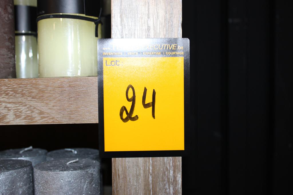 Lot 24: Meuble comprenant important lot de bougies + fleurs artificielles