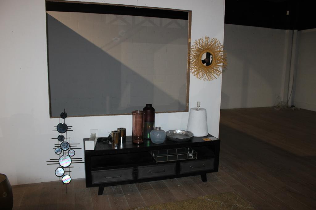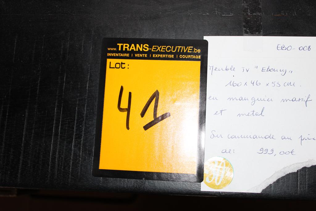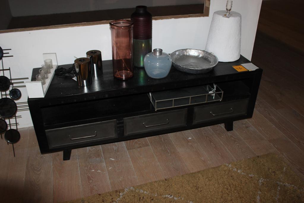 Lot 41: Meuble TV Ebony manguier massif/ métal 160*46*55+ décos