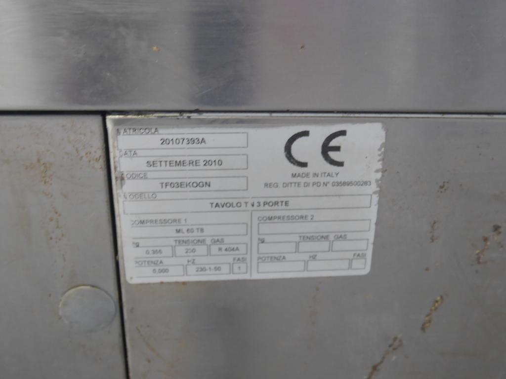 Lot 8: Table réfrigérée 3 portes en inox Tavolo TN 3 portes