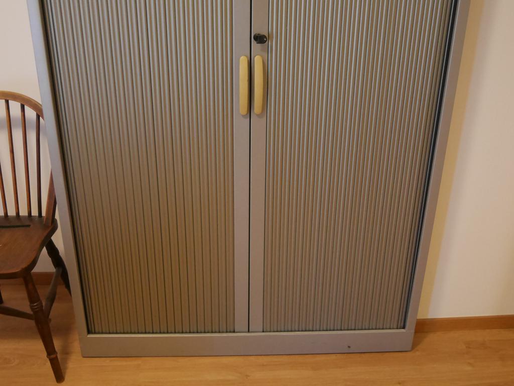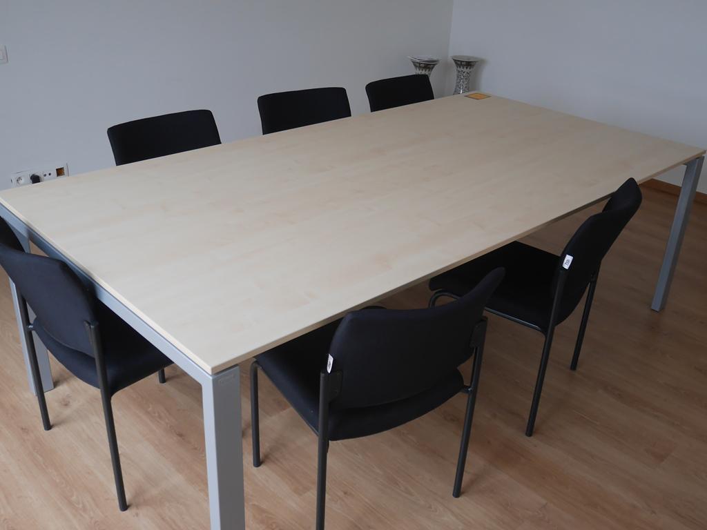 Lot 50: Table réunion en bois avec 6 chaises +2 armoires métalliques à volets