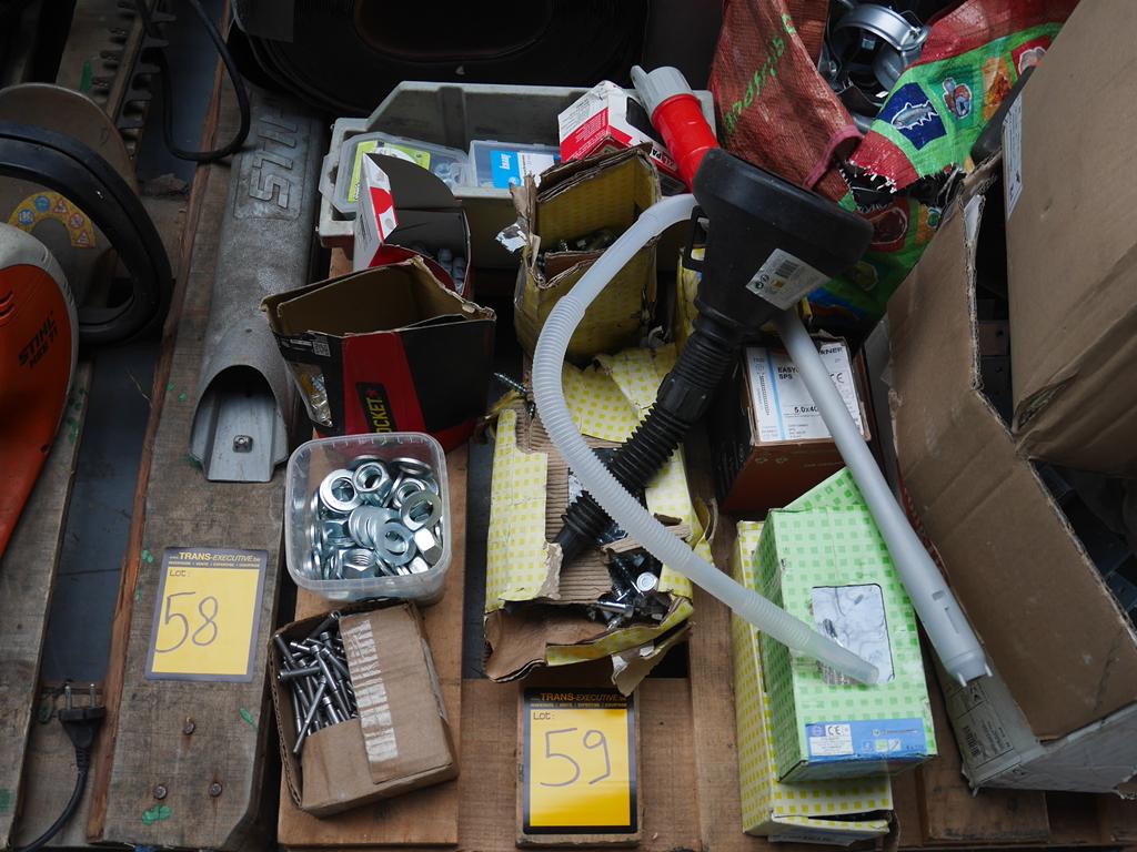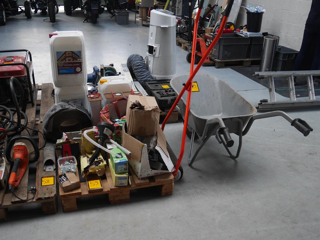 Lot 59: Visseries et produits de construction + brouette